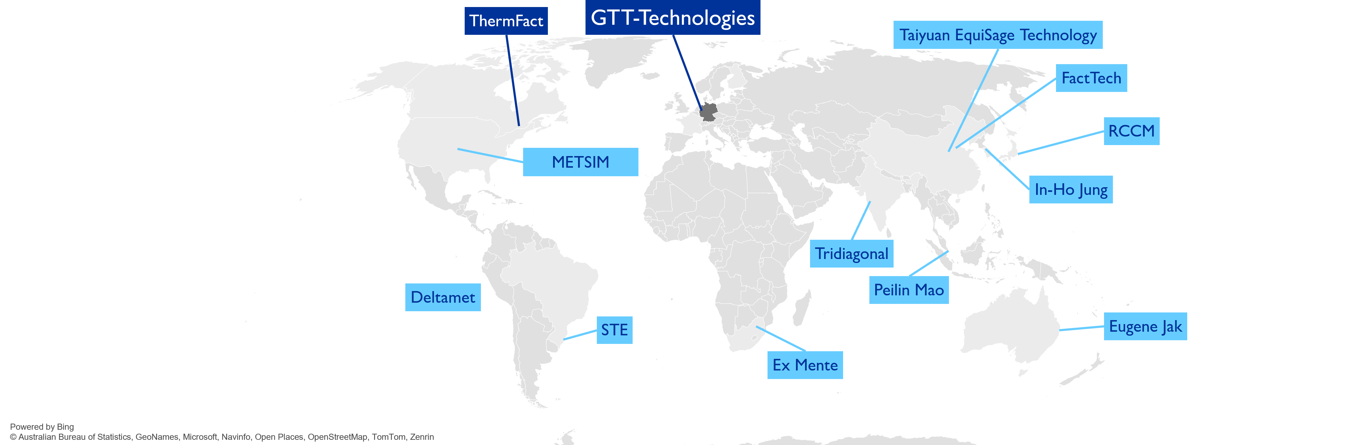 Although we operate globally, we work closely with our partners at ThermFact and maintain a strong network of dedicated sales representatives to ensure GTT-Technologies’ global presence. These representatives provide expert support and consultation in their regions. Explore our network of global sales representatives: